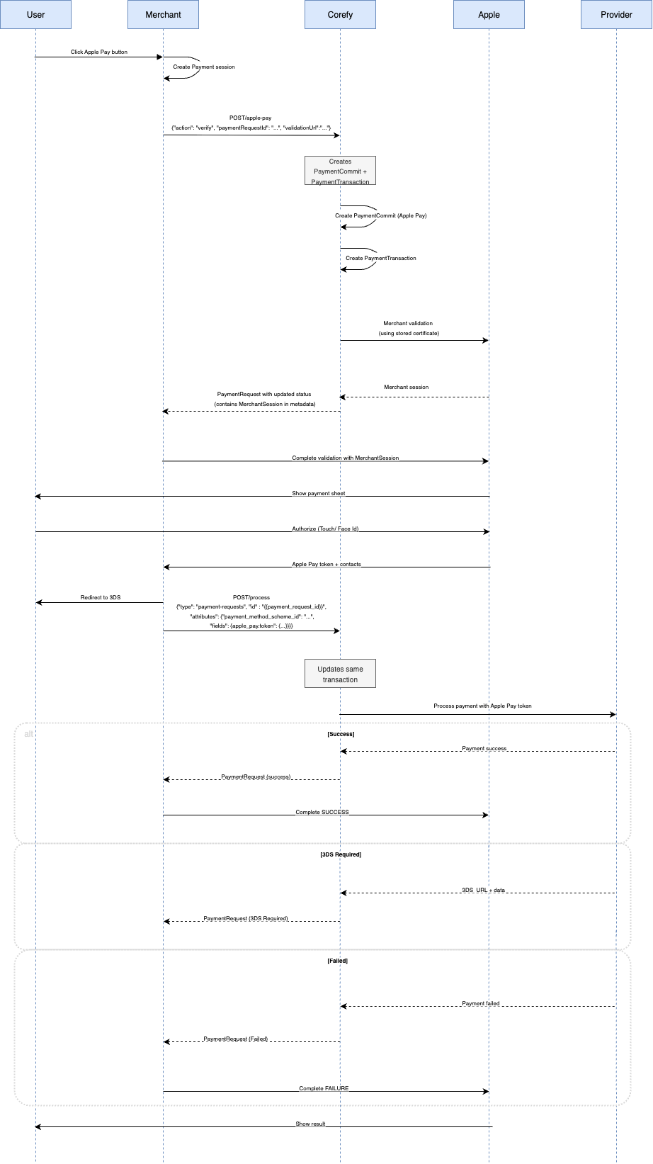 This approach reduces the technical complexity of the integration for the Merchant, since token handling and processing are fully managed by the external Provider. However, the Customer experience differs from the Apple Pay Native flow, as it involves leaving the Checkout environment before returning to the Merchant’s site after the payment is completed.