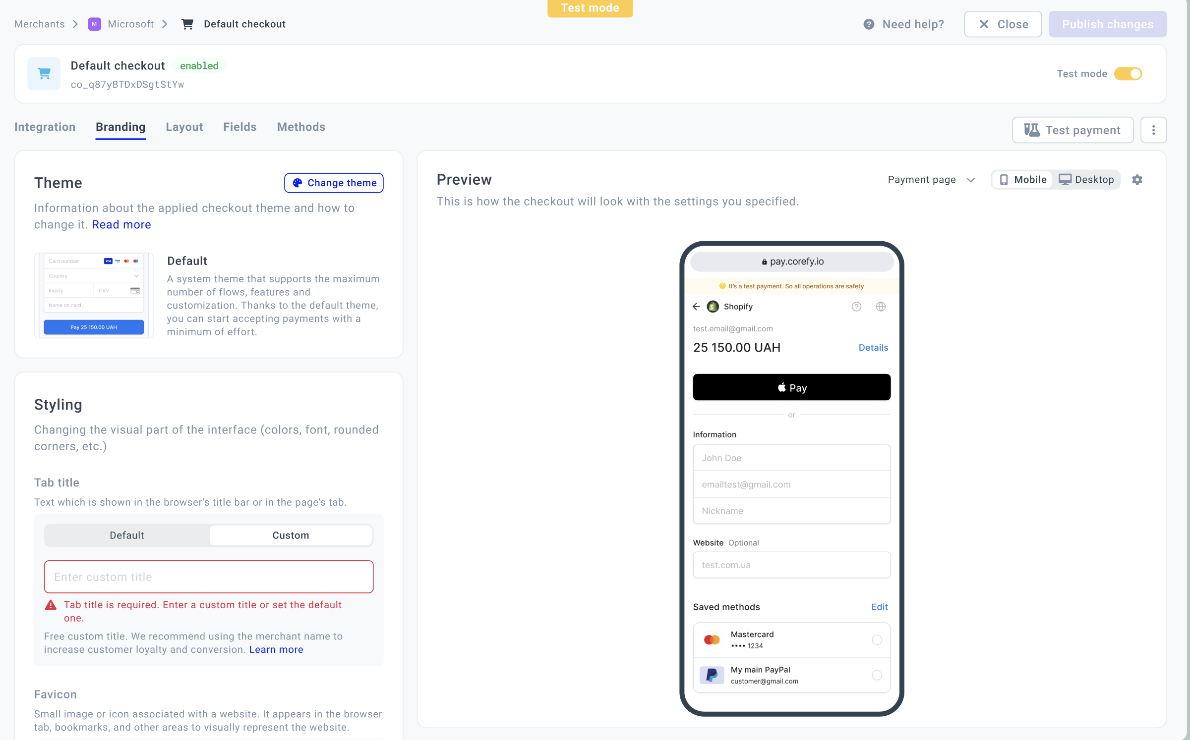 Checkout customisation is a complex process encompassing branding integration and functional load establishment. From our perspective, the customisation must be as smooth as possible, leading to brand recognition, simple payment options and higher conversion rates.
