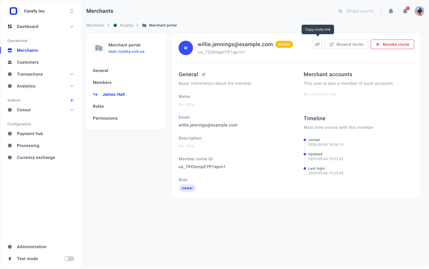 | Invites | You can Copy invite link, Resend invite or Revoke invite at the top right corner of the page. |