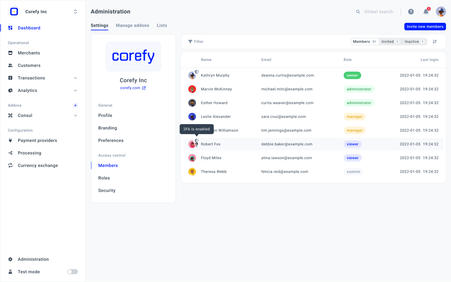 - To see who has 2F authentication, check the 2F icon near the Member's Name.