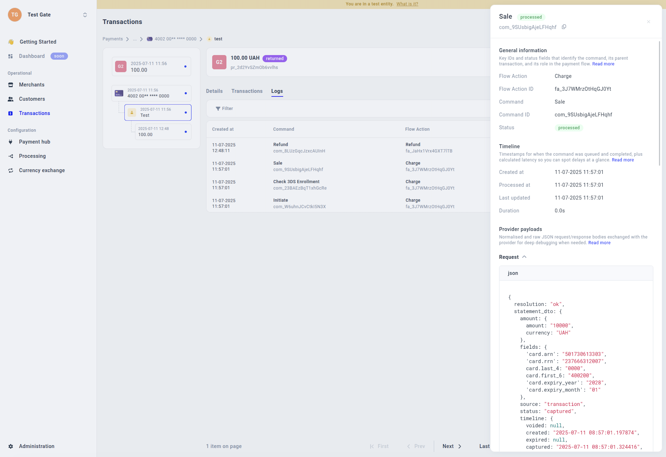 Transaction logs are detailed records of all actions and events related to a Payment Transaction. They are used to monitor, debug, and audit the payment lifecycle. These Logs help Payment Providers, Merchants, and technical teams understand what happens at each stage of a transaction.