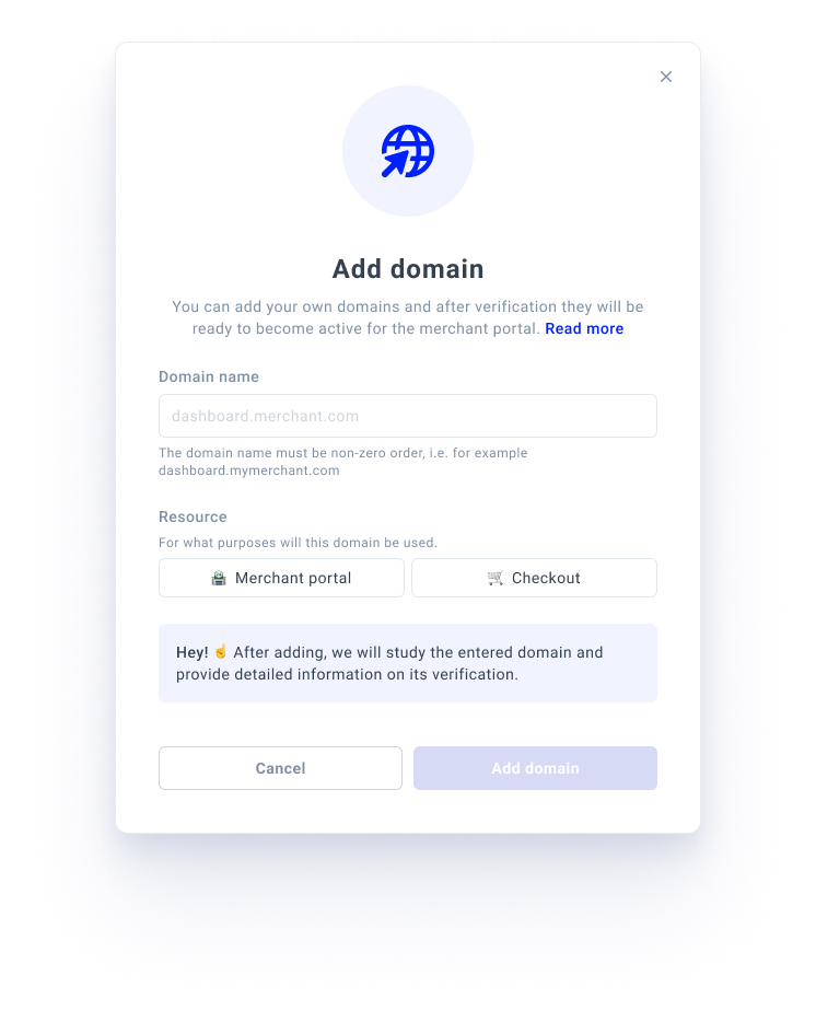 Managing Domains in the Merchant portal allows you to align the platform with your business identity. This guide explains how to configure custom Domains, undergo the Verification procedure, and ensure secure, seamless access for your Merchants.
