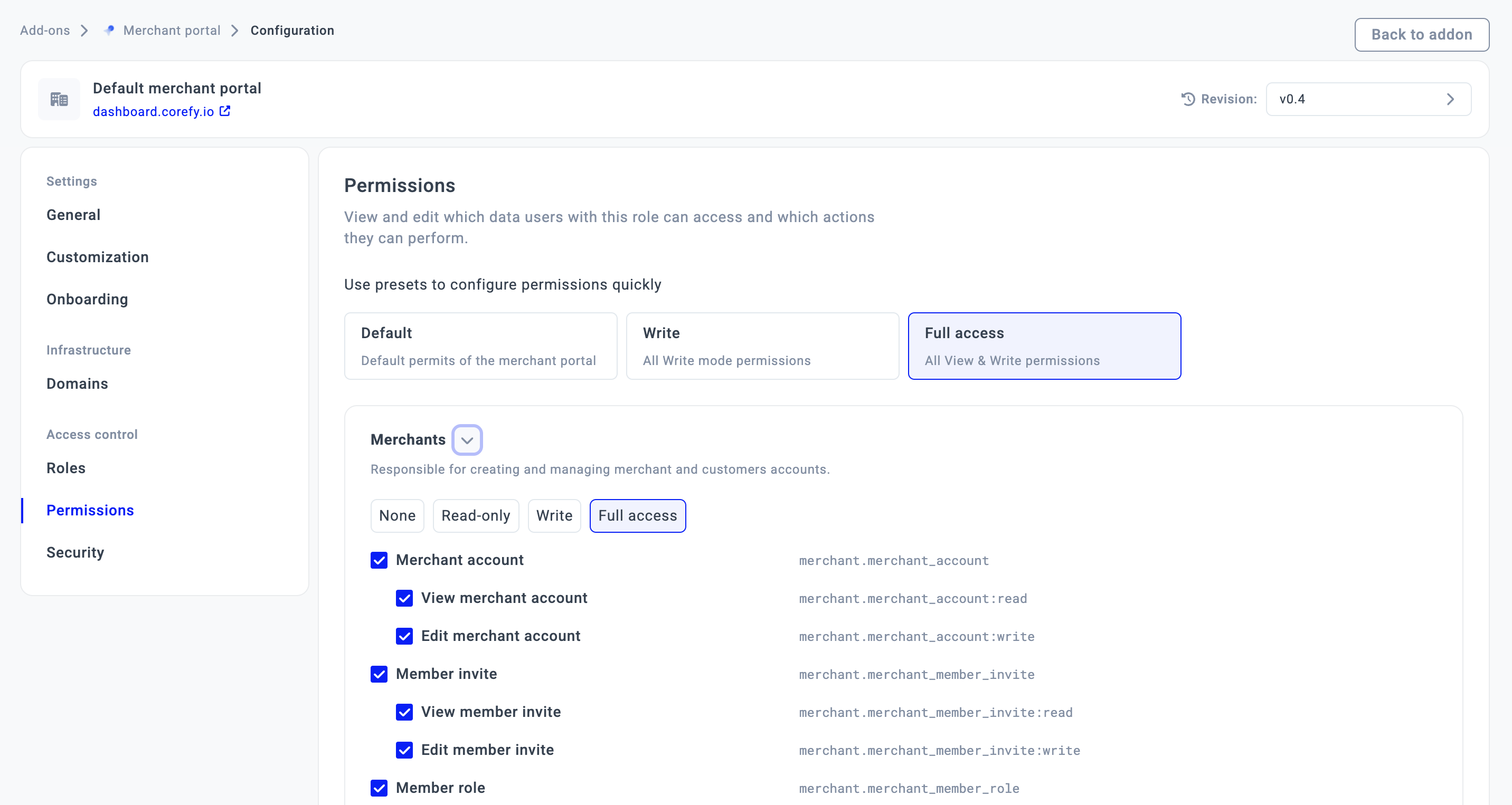- Go to the Add-ons tab. Select the Merchant portal and click it. The system redirects you to the respective page.