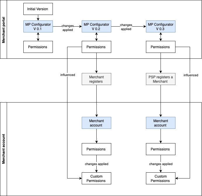 When a Payment Service Provider registers a Merchant account, the Permissions are aligned with the latest MP Version. Therefore, you can still manage the scope of the Merchant's permissions, but the variety of options depends directly on the MP Configurator and the limits that were previously established.