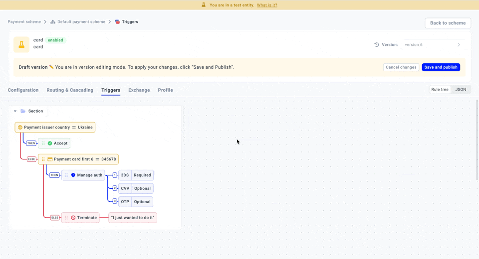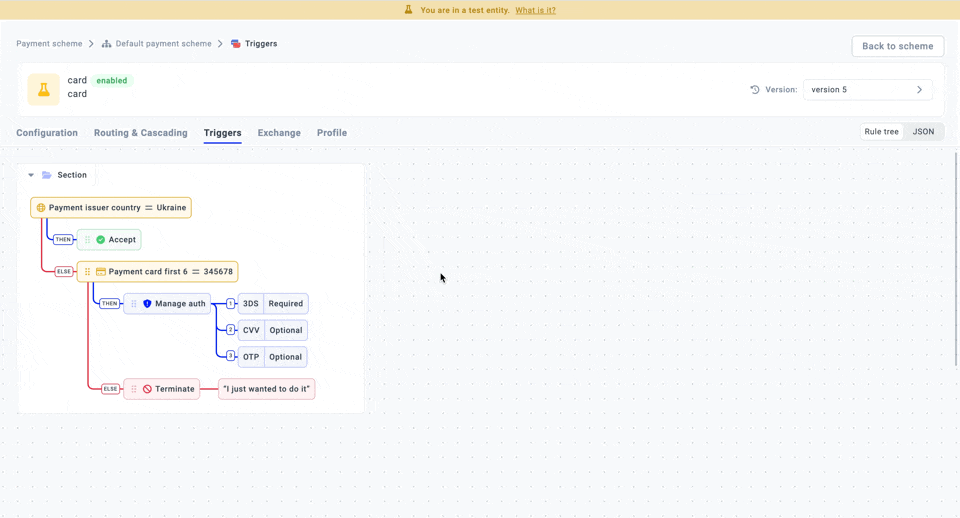 Trigger scheme is a combination of conditions that step before the Routing and cover the additional Rules that should be followed to sustain the payment process.