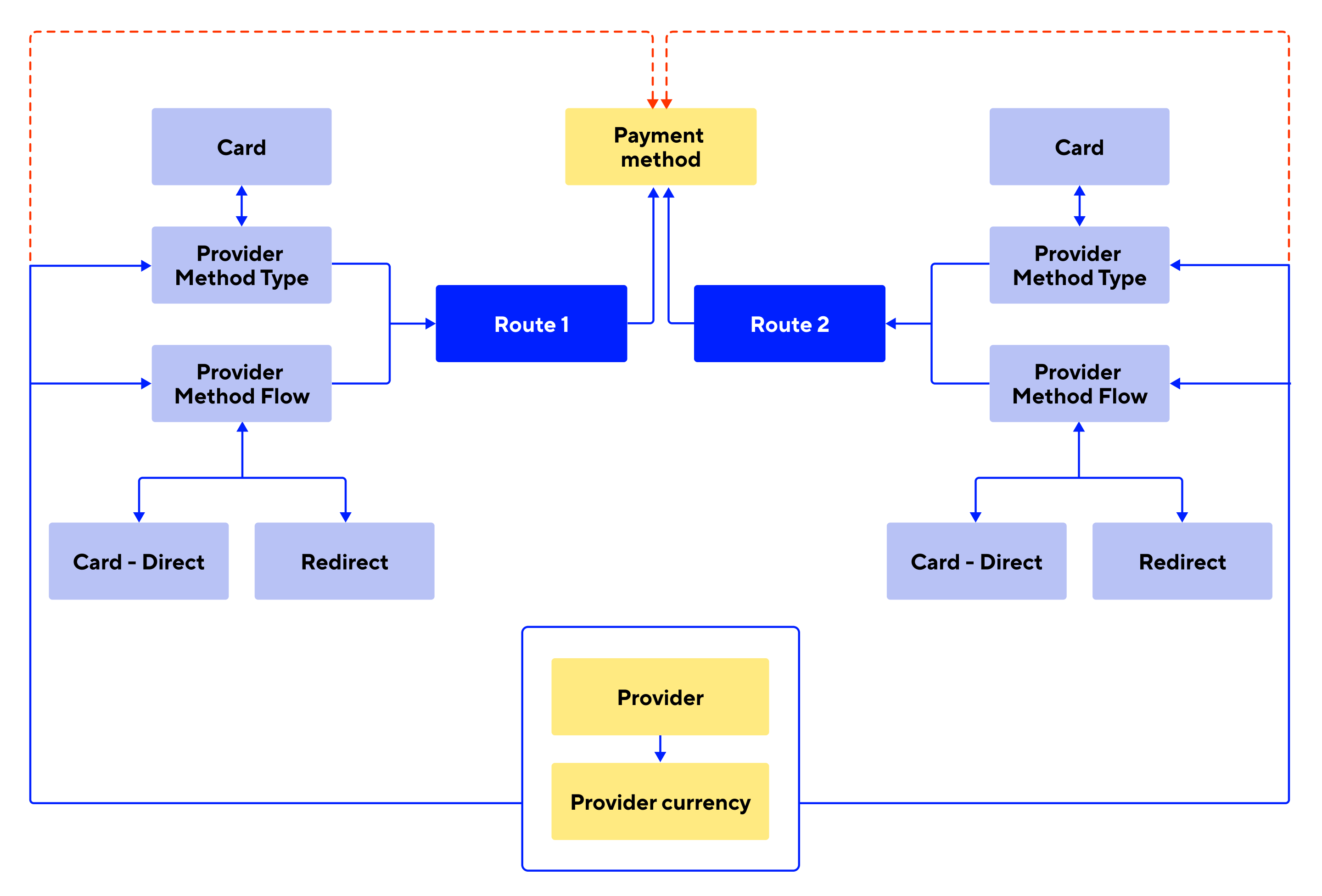Routes are the driving elements of our system, functioning as stable pathways ready to constitute the direction of Payments to the specific Accounts on the Provider side. This process develops through a set of explicit Routing rules and Strategies.