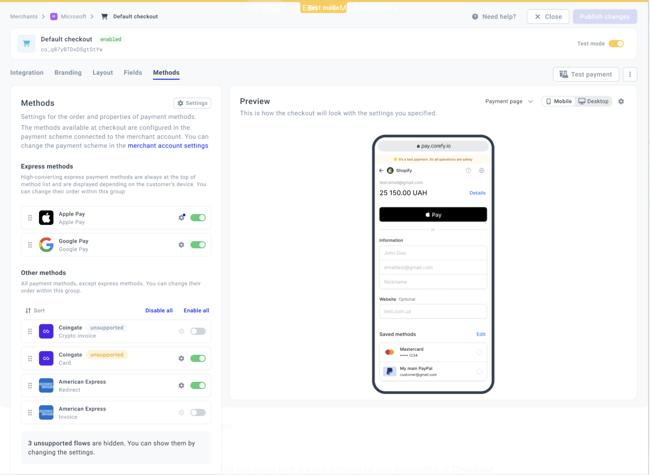 - To enable Express methods, go to the Methods settings and toggle the corresponding option on.
